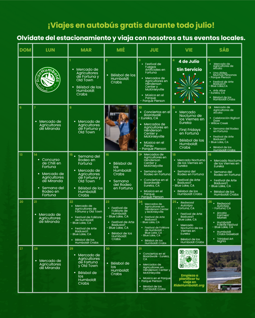 Back to NewsSkip the parking and ride with us to your local events! Free bus fares all July! Printable Schedules are below. Click to download.